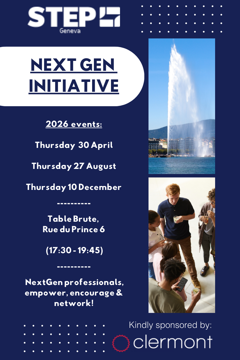 We are hosting our year-end networking drinks for our NextGen community: a chance to come together to catch up with peers and be introduced to new faces. Let’s close the year on a high! The NextGen community in Geneva is vast and there is little dedicated to enhancing a social network for NextGens – a vital part of career development. The STEP GVA NextGen Initiative bridges that gap by bringing the opportunity for NextGens to connect in a dedicated environment. Our NextGen events are a dedicated social forum for NextGen professionals to meet, network and build business interests organically together. As always, STEP members and non-members are welcome – the bigger the community, the more advantages for everyone. Our first event in 2026 is going to take place on 30 April 2026, but but the date below for another 2 events A quick reminder as to who qualify as NextGen. This is not defined by an age limit. It is anyone in the first 10+ years of their career or those who have completed their STEP Diploma within the last 4 years. It is not those who are business owners, CEOs, senior managers, directors or partners in their businesses. Our NextGen events are also not intended to be an open platform for recruiters. Please bear this in mind when registering! |